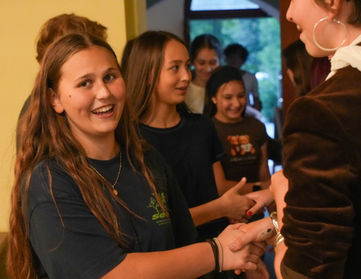 Nyní se ještě na chvilku vrátíme ke včerejšku. Páteční den byl dnem příjezdovým. První studenti KUKuniverzity se dostavili nejprve na studijní oddělení, kde v magickém kruhu nejprve odevzdali papíry nutné k přijetí a poté se rozloučili s rodiči. Dále už následoval počátek naší společné studijní cesty, při které jsme se odprostili od každodenních starostí moderního člověka a soustředili se na 5 vjemů: dech země, zrak nebe, náruč stromů, ticho světa a hlas přírody. Poté si každý založil herbář a našel si svou první rostlinku ochranitelku. Herbář se tedy od tohoto okamžiku stal studijním průkazem, který si opatrujeme na svých kolejích a který je třeba přinést vždy na večerní studium.